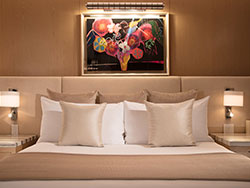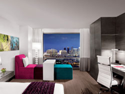 Located in the Ivory Tower, this contemporary 440-square-foot room comes with two queen beds that boast Serta Platinum Suite pillow-top mattresses and down feather bedding. Designed by Klai Juba and Seed Design, the décor features a modern concept accented with horizontal lines, warm wood tones and vibrant velvet. There is a captivating 16-foot oversized mural on the wall that adds to the room's alluring vibe. Amenities include a 46-inch LED TV with an electronic media hub that allows guests to connect a laptop, camera, media player or game system to it. Guests will also enjoy an extended music channel selection with nine genre options.